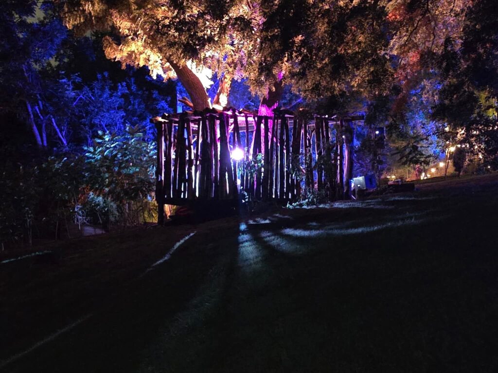 The property now has terraced gardens, a hidden hangout room, and a state of the art stage featuring hand crafted wood carvings.