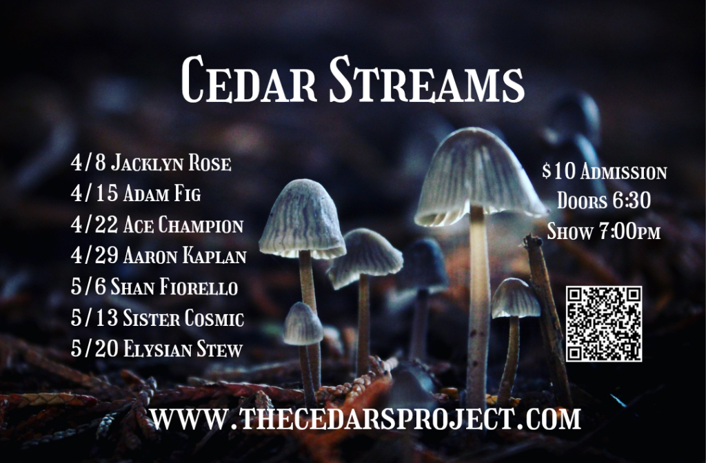 Cedar Streams is an in-person livestream series that takes place every Wednesday at The Cedars Project. Each week features a live performance/interview of an original artists in an intimate setting that will be streamed on Facebook/YouTube and later uploaded on Spotify. Doors open at 6:30pm. Shows start at 7pm. Admission is $10. Seating is limited. No late entry allowed.