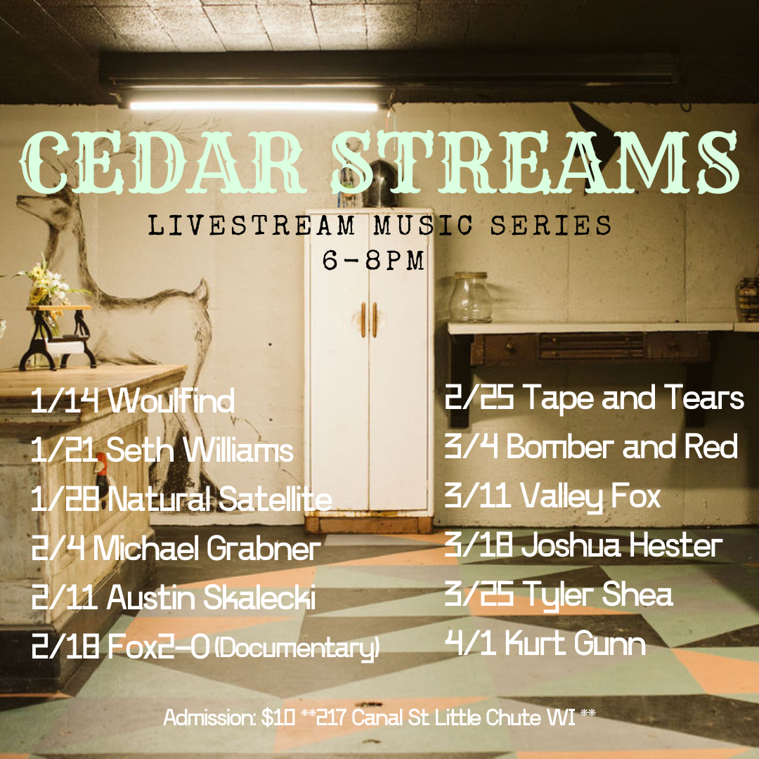 Cedar Streams is an in-person livestream series that takes place every Wednesday between 1/14/2026 and 4/1/2026 at The Cedars Project. Each week features a live performance/interview of an original artists in an intimate setting that will be streamed on Facebook and later uploaded to YouTube. Show start at 7pm. Guests should arrive at least 30 minutes before the show. Admission is $10. Seating is limited. No late entry.